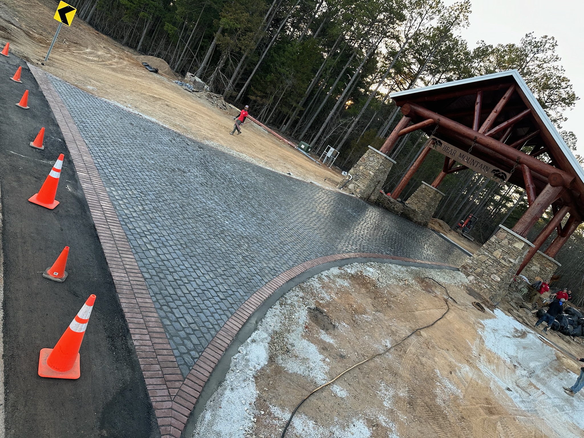 Laying and leveling paver stones: Once the prep work is complete, our professionals will begin laying out and installing the stones, fitting them together into the desired design and ensuring everything is level.