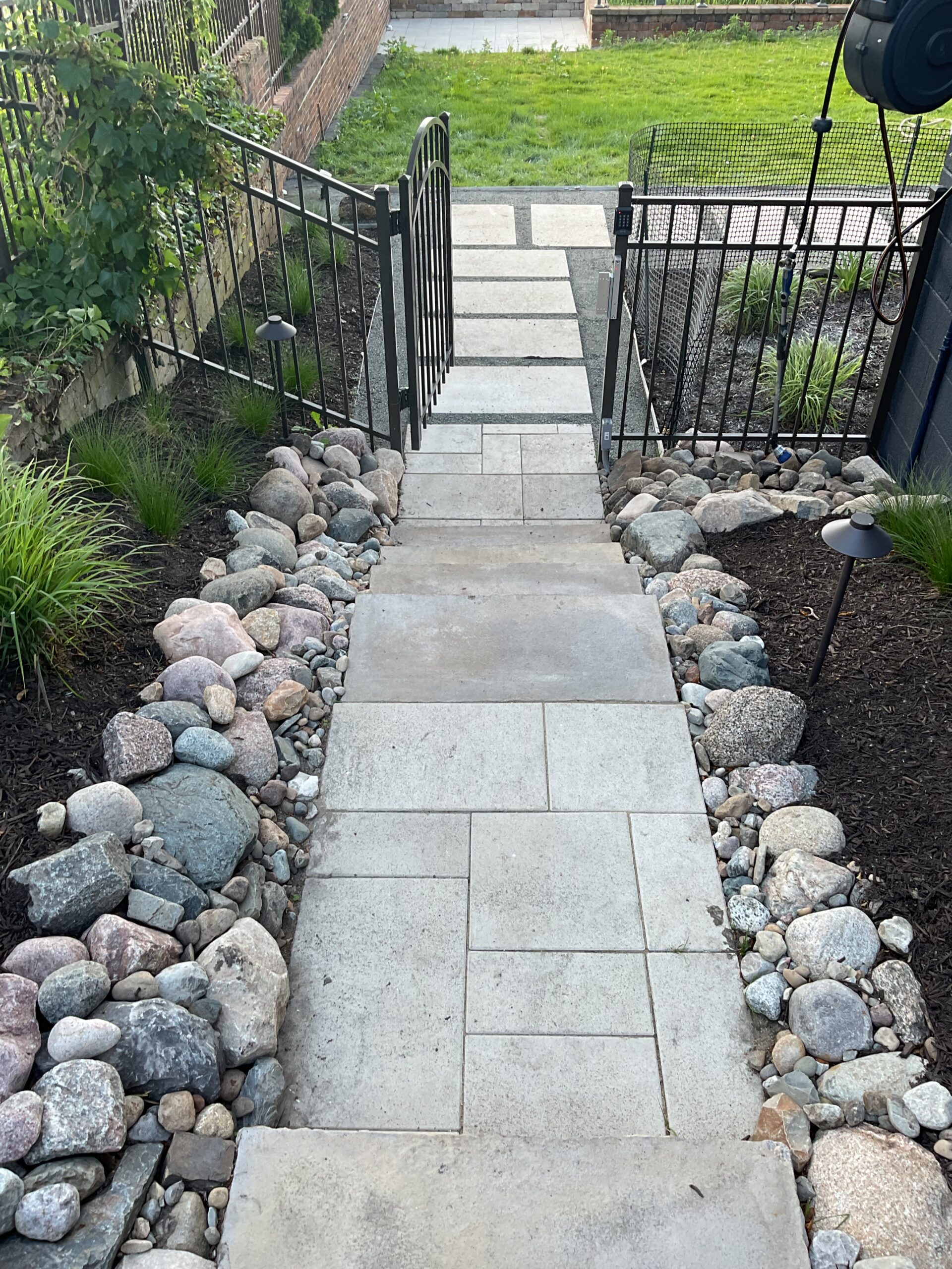 Completing installation: Our finishing tasks include inspecting the patio or walkway, adding sand or gravel to fill in any gaps, and ensuring every detail has been completed.